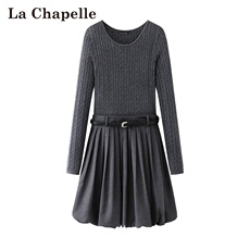 【迷迭庄园】Uena明星同款黑色堆堆领长袖拼接蓬蓬连衣裙附打底裤