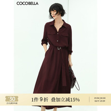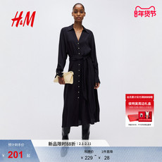 HM女装连衣裙2026春季新款衬衫式V领收腰长袖通勤连身裙1318835