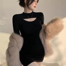 内搭修身显瘦打底包臀短裙子性感辣妹秋冬德绒长袖连衣裙女带胸垫