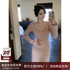 胖mm300斤特大码长袖针织连衣裙长款秋冬宽松V领打底裙过膝直筒裙