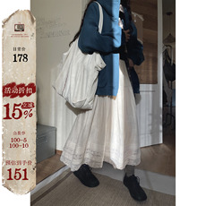 森女部落学院风高腰A字半身裙女2025新款冬季蕾丝拼接设计感长裙