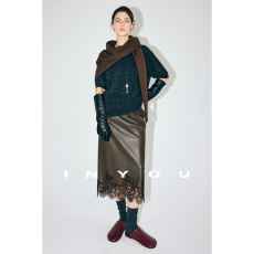 Kroche 25aw 浪漫蕾丝 不规则下摆 蕾丝花边A字高腰长款半身裙