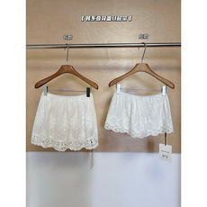 2025春夏新款纯色棉布刺绣半身裙叠穿屁帘下摆百搭蕾丝高腰短裙