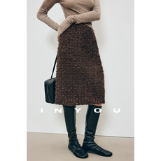 秋水伊人优雅气质风丝绒鱼尾裙2025年冬季新款百搭蕾丝拼接半身裙