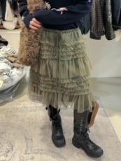 时尚蕾丝叠穿罩裙网纱半身裙女春季绑带高腰A字裙围裙一片式屁帘