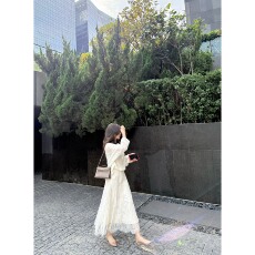 秋季独特设计感别致气质垂坠感白色蕾丝半身裙女高腰显瘦A字长裙