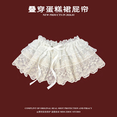 小众原创设计韩国蕾丝纱裙花边屁帘围裙女叠绑带半身裙百搭罩系带