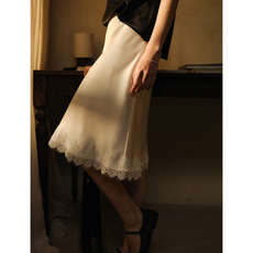 半身裙衬裙打底裙 防走光防透防静电 裙内衬搭白黑色 蕾丝中长款