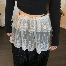 韩国小众设计蕾丝裙叠穿屁帘女外搭网纱裙帘罩衫遮臀波点半身围裙