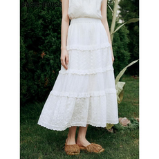 gagaopt甜美气质蕾丝白色蛋糕裙秋冬季外搭半身裙法式大摆A字长裙