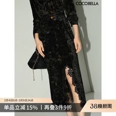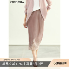 COCOBELLA法式优雅玫瑰粉丝绒半身裙女蕾丝风拼接直筒裙HS3126-2