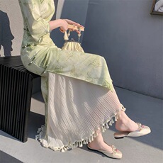 旗袍搭配内搭衬裙流苏半身裙中长款百褶裙气质蕾丝网纱裙仙女裙子
