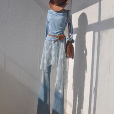 COCOBELLA新中式扎染丝绒半身裙女国风蕾丝拼接开叉半裙HS3073