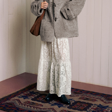 落落狷介 a字半身裙女秋冬2025新款设计感小个子白色蕾丝半身裙女