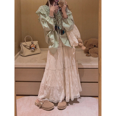 法式重工木耳边蕾丝网纱蛋糕蓬蓬短中裙女春夏miu韩系仙气半身裙