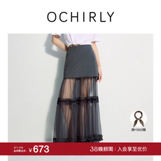 OCHIRLY欧时力 拼接纱裙a字半身裙长裙蕾丝气质2025秋季新品