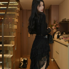 落落狷介 半身裙女2025新款秋冬款设计感小众不规则蕾丝半裙A字裙