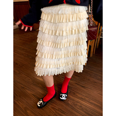 日韩miu系甜美木耳边网纱蕾丝半身裙女春夏大摆遮胯a字蓬蓬蛋糕裙
