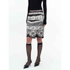 SHIJIRRR 24FWVOL.1新品黑色蕾丝印花绸面珠光感半身开衩中裙