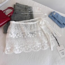 今年新款设计白色蕾丝系带纱裙一片屁帘半身裙不规则搭配围裙