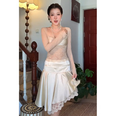 棉村漂亮出游光泽感蕾丝拼接性感短裙女纯欲小众设计感包臀半身裙