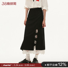 新品-BANANA BABY2026年春新款温柔肌理感蕾丝不规则中长款半身裙