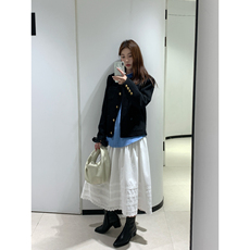 2025ZA秋季新品女装纯欲风纯色蕾丝拼接设计不规则半身裙 4772518