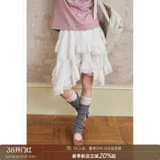 Yukiss 米色复古蕾丝拼接半身长裙蛋糕裙女冬季韩系宽松遮胯A字裙