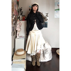 ROCKMORE【流浪宣言】波嬉风米白色不规则半身裙蕾丝拼接A摆长裙