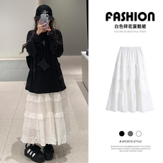 白色蕾丝半身裙女春秋2026新款高腰显瘦a字长裙温柔风蓬蓬蛋糕裙