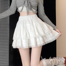 大码白色法式芭蕾风蓬蓬蛋糕裙春季荷叶边短裙高腰a字蕾丝半身裙