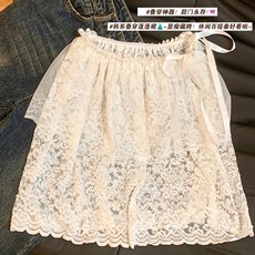 韩国屁帘蕾丝半身裙女一片式网纱裙帘下摆日系叠穿裙罩白色短裙子