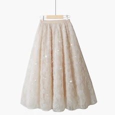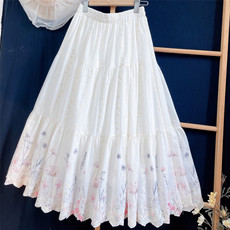 白月光超重工小白裙2025春秋新款白色中长款蕾丝刺绣拼接半身裙女