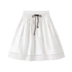 FabGirls 法式复古蕾丝花边拼接氛围系带半身裙 慵懒百搭显瘦长裙