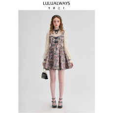 LULUALWAYS我爱露露24秋季新款优雅气质时尚蕾丝拼接短款连衣裙女