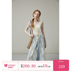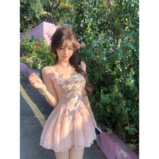 雅乔【樱桃蜜酿】2个版夏季海边度假风蕾丝花边小樱桃碎花连衣裙