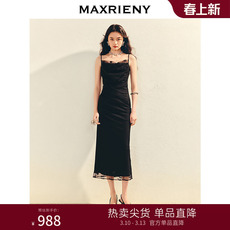 ITSNIKAR 黑色性感蕾丝连衣裙女蝴蝶设计感小众吊带长裙小黑裙子