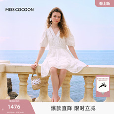 李兰迪同款可可尼法式度假蕾丝连衣裙女2025秋季新款镂空小白裙