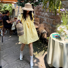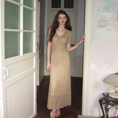 Even一雯【夏日青提】韩系高智感法式气质蕾丝拼接日常短袖连衣裙