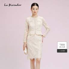 La Koradior拉珂蒂时尚秋季蕾丝刺绣假两件中长款气质修身连衣裙