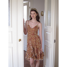 Middletone | 清野裙 45度斜裁印花雪纺蕾丝连衣裙复古度假吊带裙
