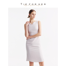 TieForHer"南法假日"藕粉色无袖花瓣领职场日常优雅精致连衣裙女