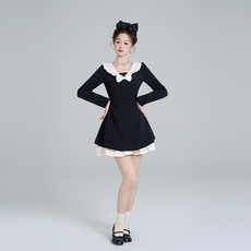 2025秋季新款拼接名媛轻奢宴会小黑裙气质赫本风贵气连衣裙D3689