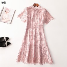 【玫瑰裙】珂莱商场同款2025夏季新款女装蕾丝花纹优雅短袖连衣裙