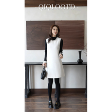 Garbociaga龙喜儿 法式气质50%澳羊毛精纺重工钉珠花边连衣裙6632