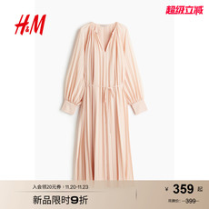 HM秋季女装时尚休闲休闲褶裥雪纺连衣裙1242755