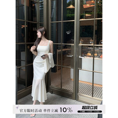 2025新款木耳边吊带连衣裙女夏季甜美法式收腰显瘦设计感超仙长裙