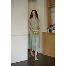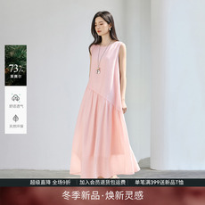 SimpleRetro设计感两穿V领型背心连衣裙亚麻无袖裙法式优雅裙