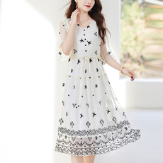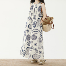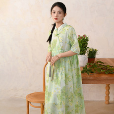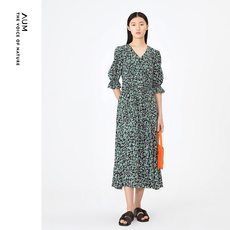 AUM噢姆夏季文艺植物图鉴丝棉绡印花连衣裙女