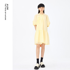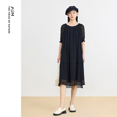 AUM噢姆夏季宽松提花剪花波点廓形娃娃连衣裙女
